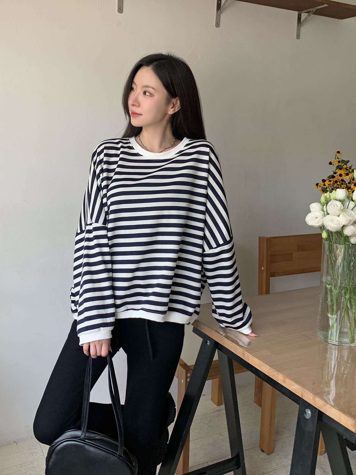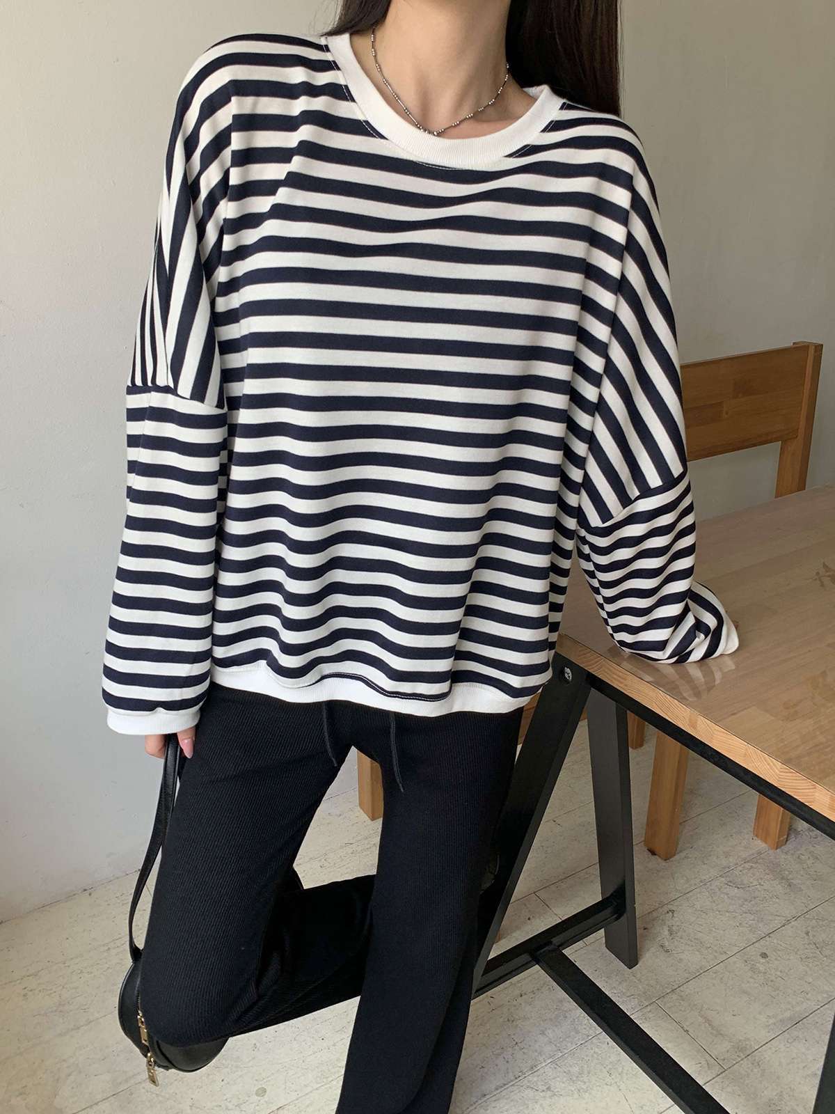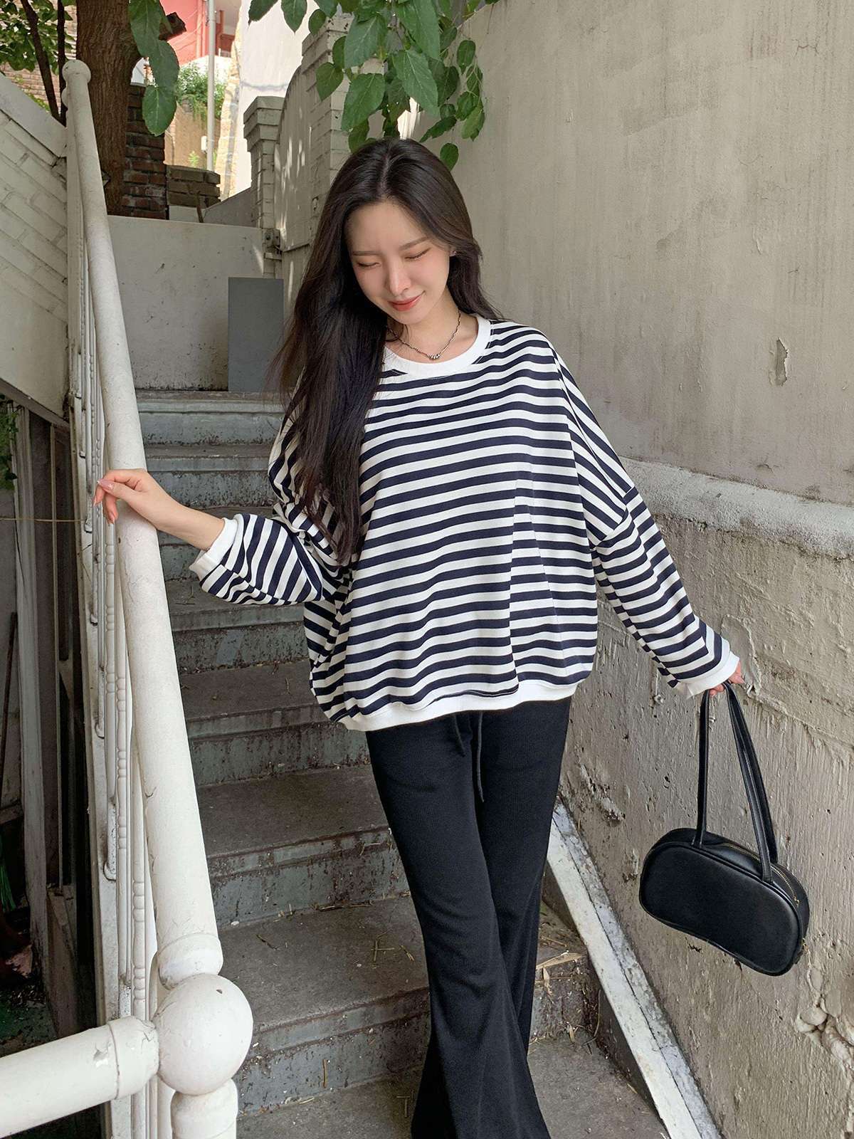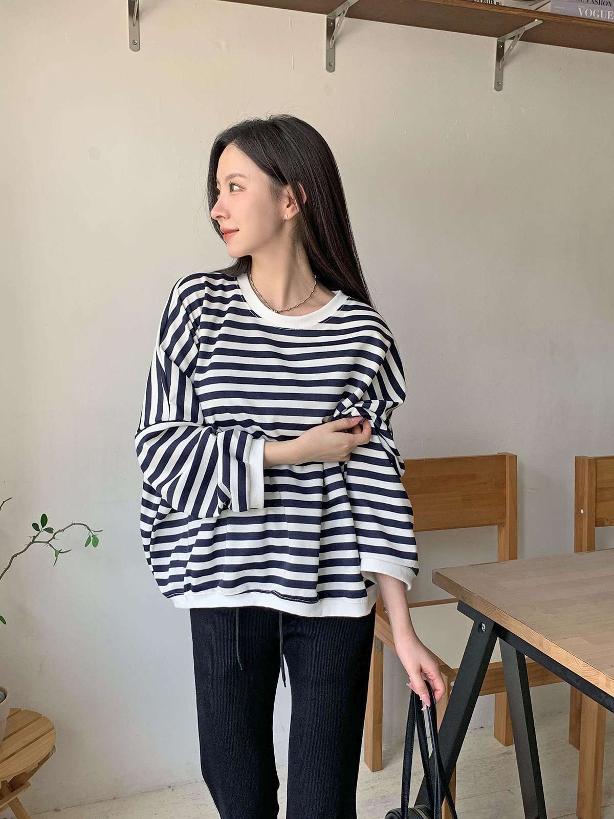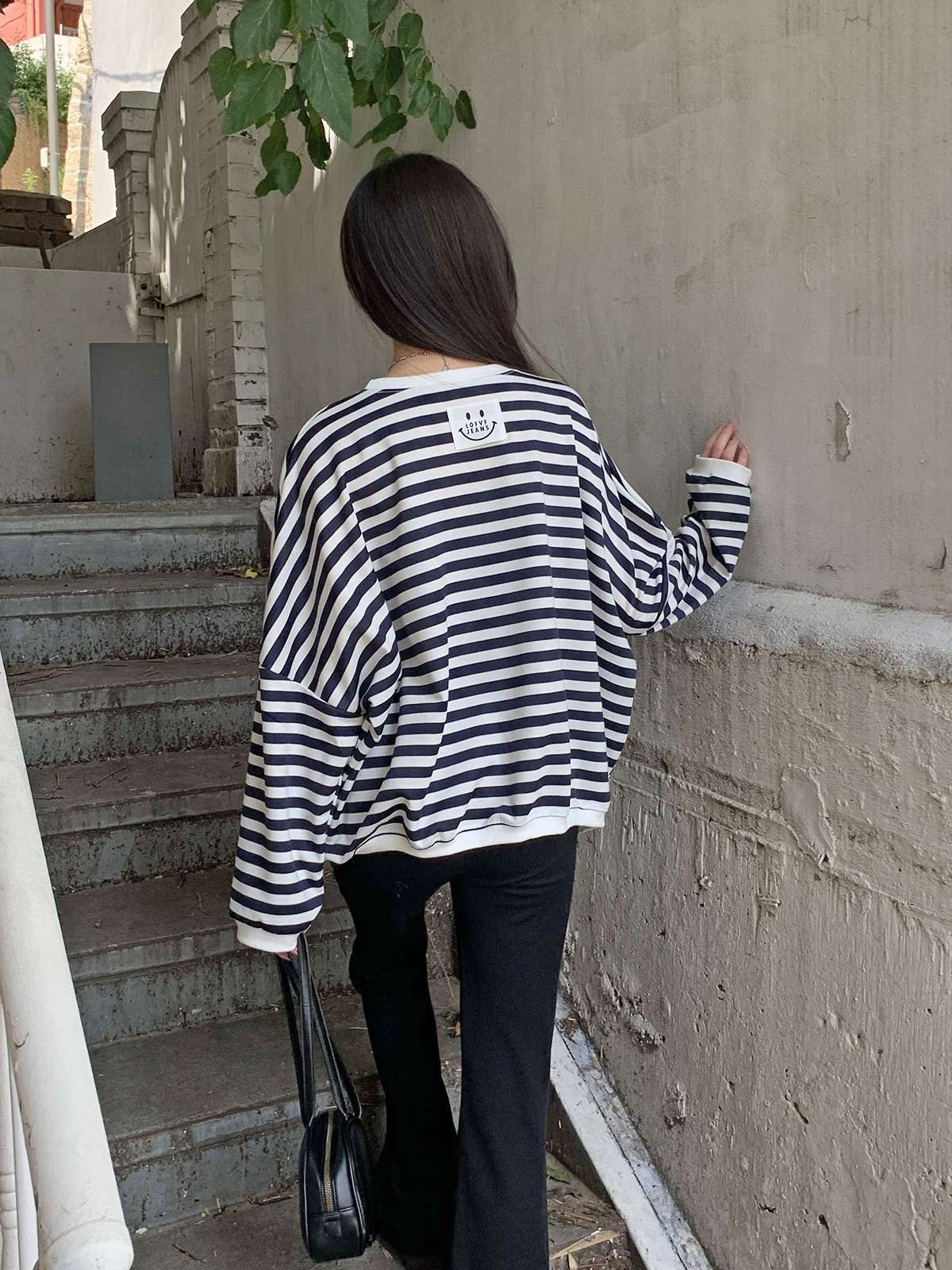 #티셔츠#맨투맨#데일리맨투맨#캐주얼#여성맨투맨#단가라#스트라이프#단가라맨투맨#스트라이프맨투맨#루즈핏맨투맨#오버핏맨투맨#가을맨투맨#간절기맨투맨#스마일맨투맨#자수맨투맨#패치맨투맨#스마일패치#긴팔티셔츠#데일리#꾸안꾸#데일리룩#가을#가을옷#가을신상#가을룩#캐주얼룩#캠퍼스룩#꾸안꾸룩#마실룩#가을코디#환절기코디#긴팔#편한옷#유니크룩