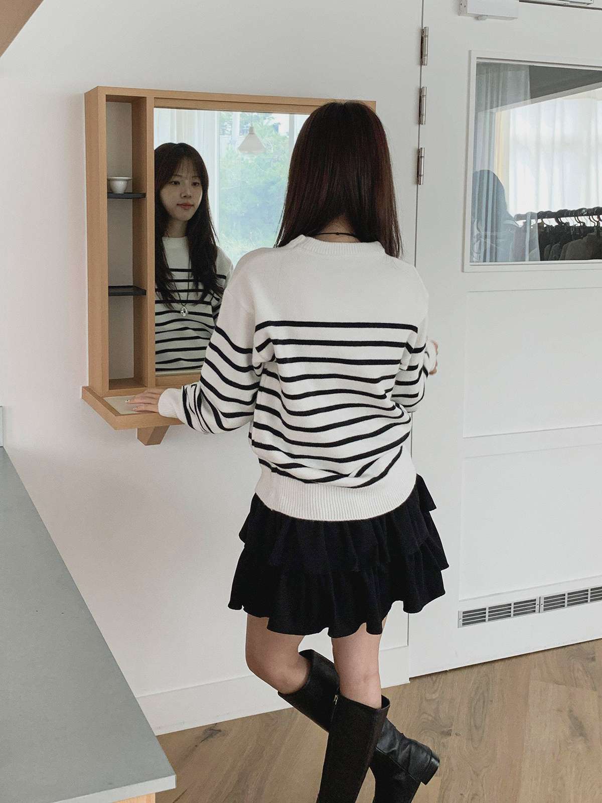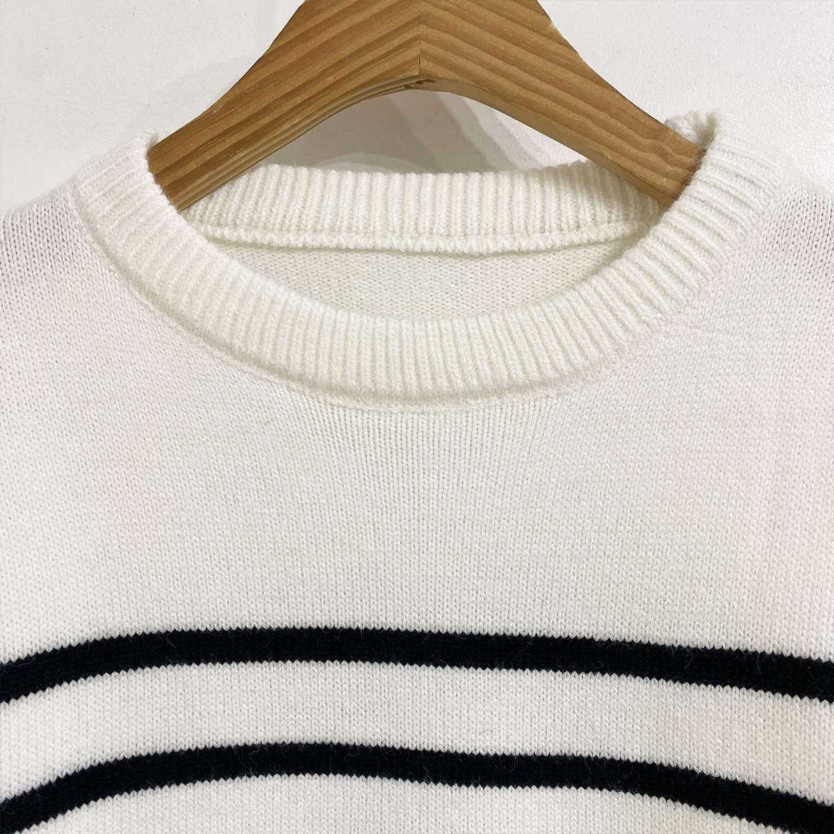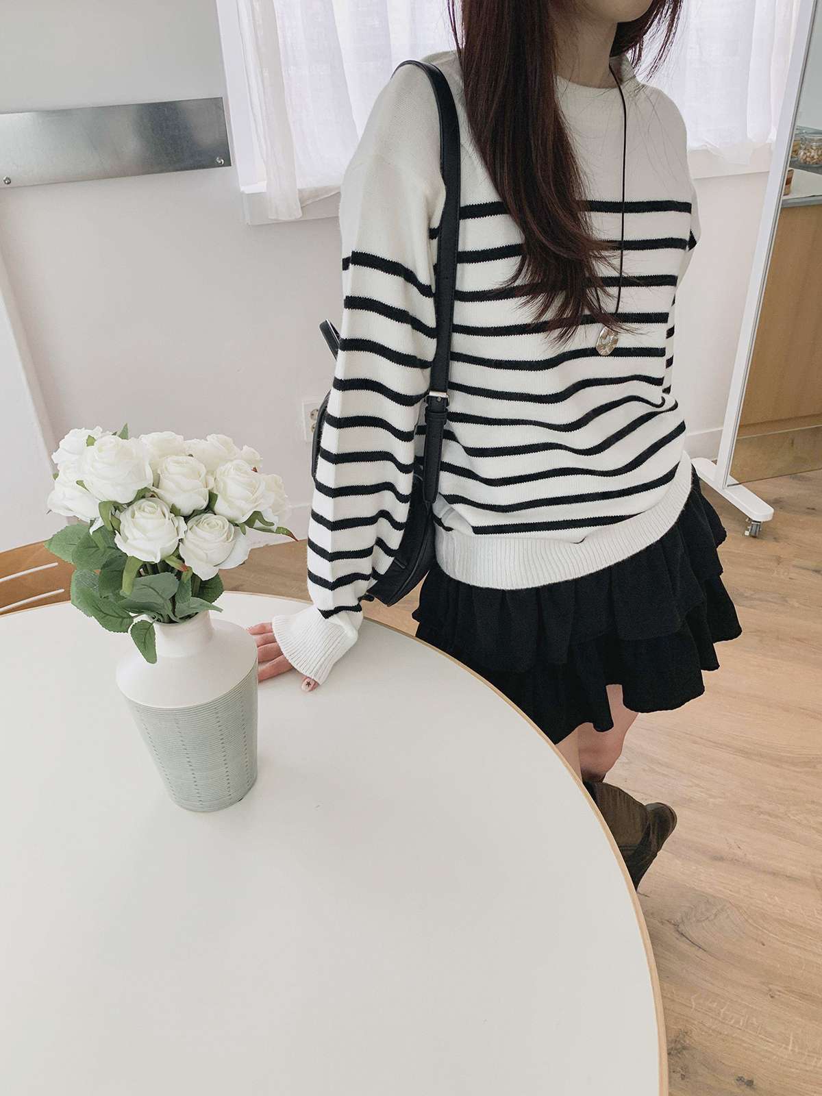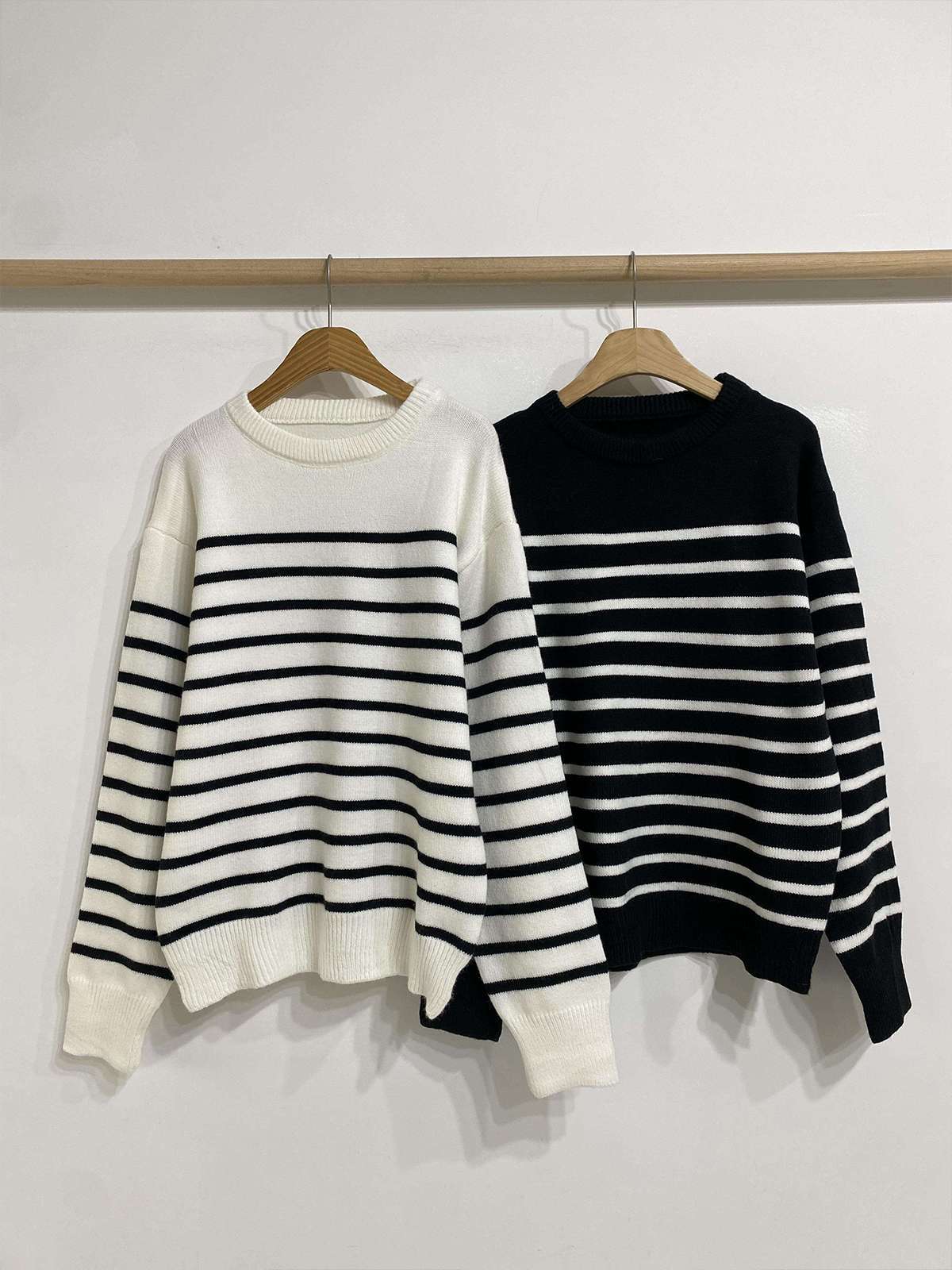 부드러운 촉감과 스트라이프 디자인이 포인트인 라운드 니트
