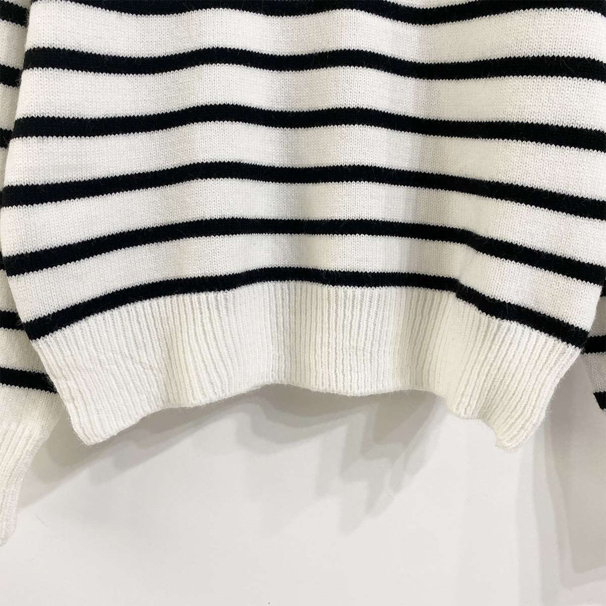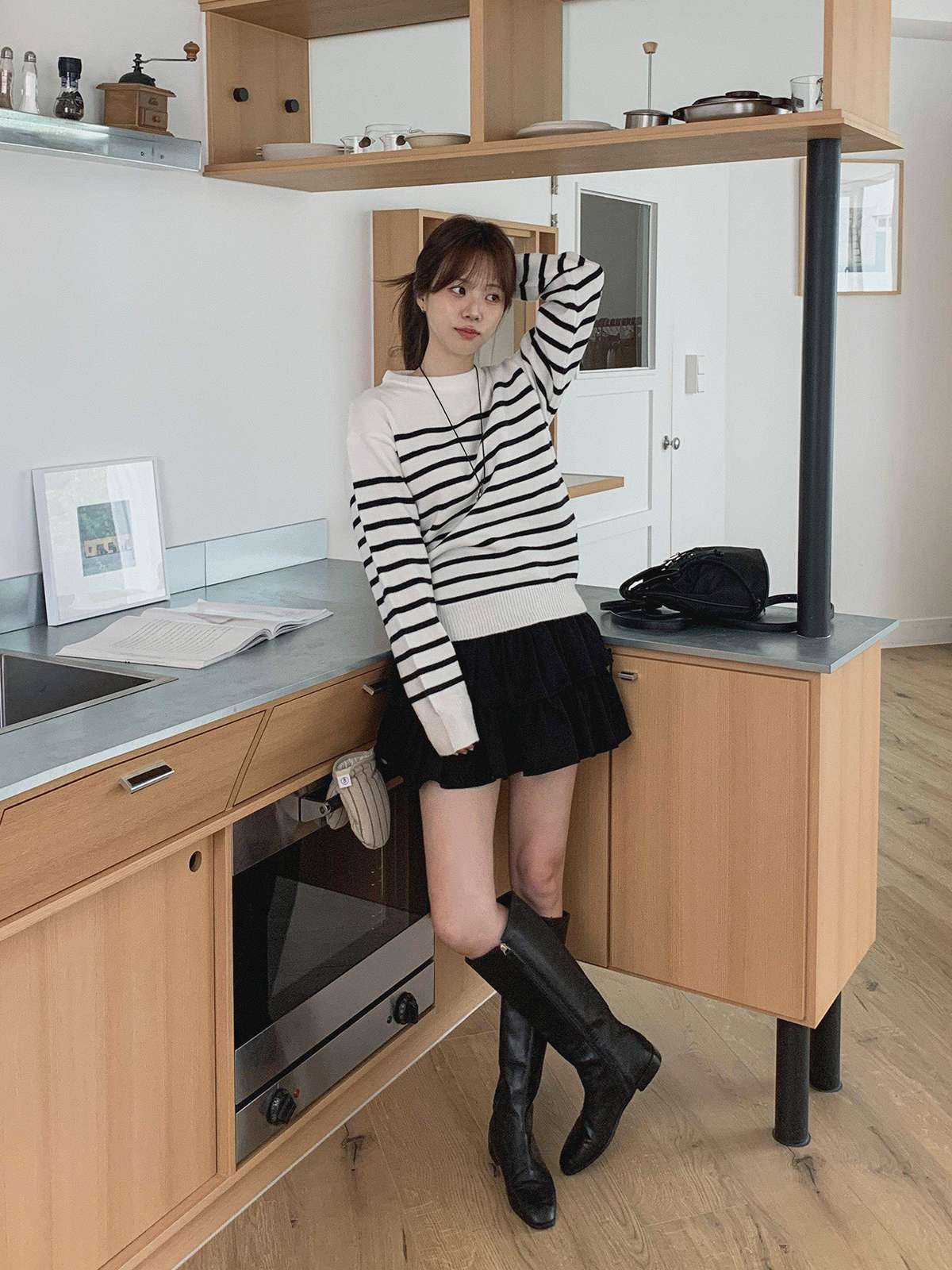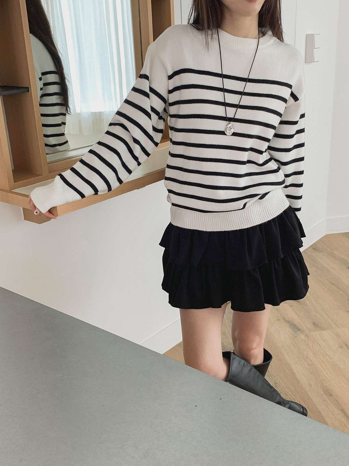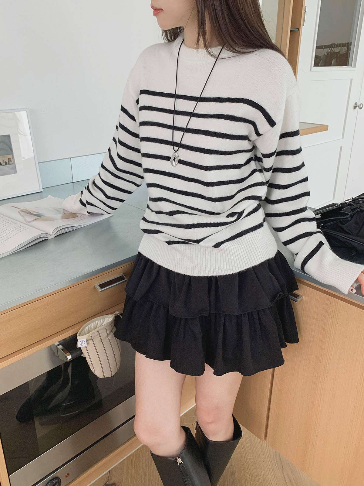 부드러운 촉감과 스트라이프 디자인이 포인트인 라운드 니트